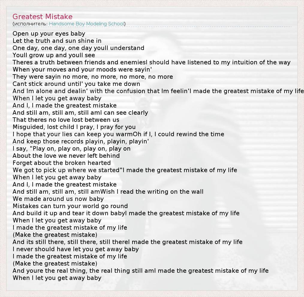 А как ты думаешь, о чем песня "Greatest Mistake" ?