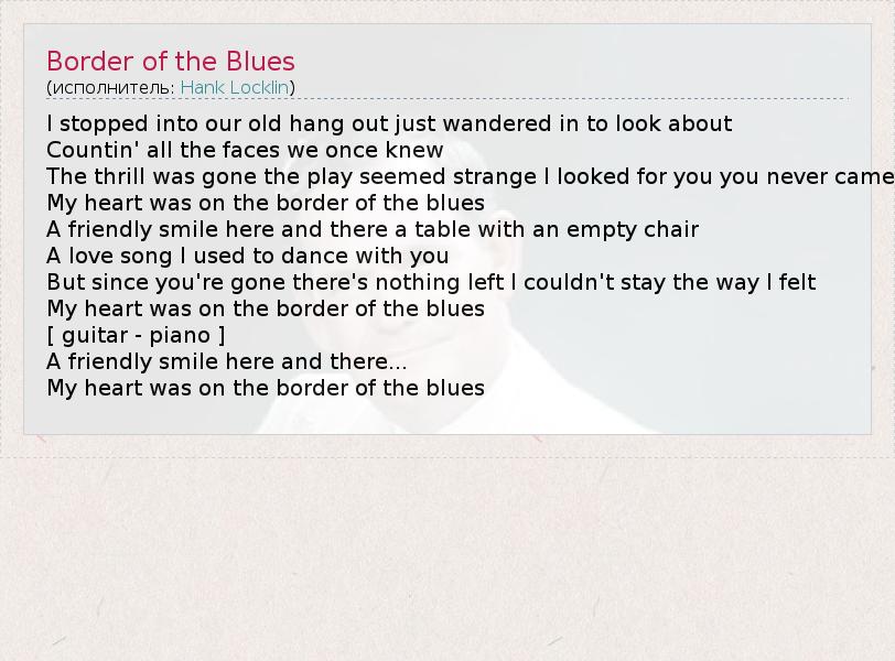 А как ты думаешь, о чем песня "Border of the Blues" ?