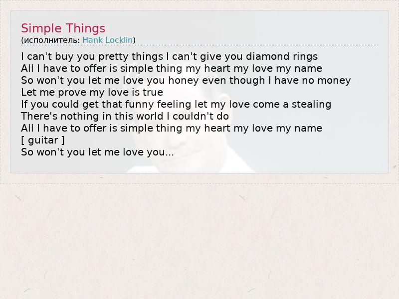 Это интересно:15 февраля 1918 — 8 марта 2009Лоуренс Хэнкинс Локлин, более известный как Хэнк Локлин — американский кантри-исполнитель, автор песен. Наиболее популярные песни — «Please Help Me, I’m Falling», «Send Me the Pillow That You Dream On», «Geisha Girl».Родился в бедной семье, поэтому с детства вынужден был работать, в том числе собирать хлопок на полях. Он начал играть на гитаре в возрасте девяти лет, когда лечился... продолжение