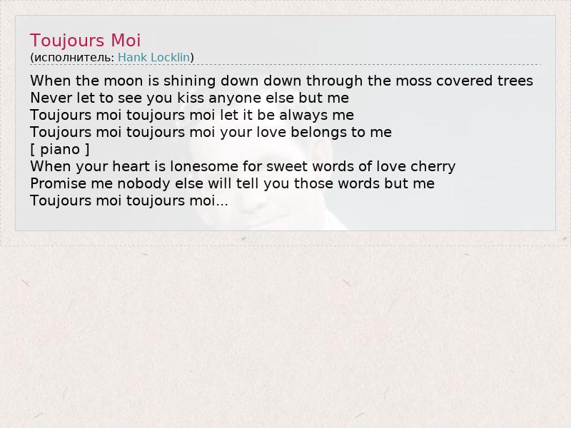 А как ты думаешь, о чем песня "Toujours Moi" ?