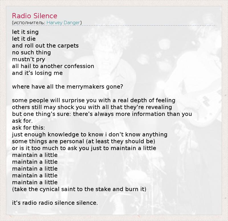А как ты думаешь, о чем песня "Radio Silence" ?