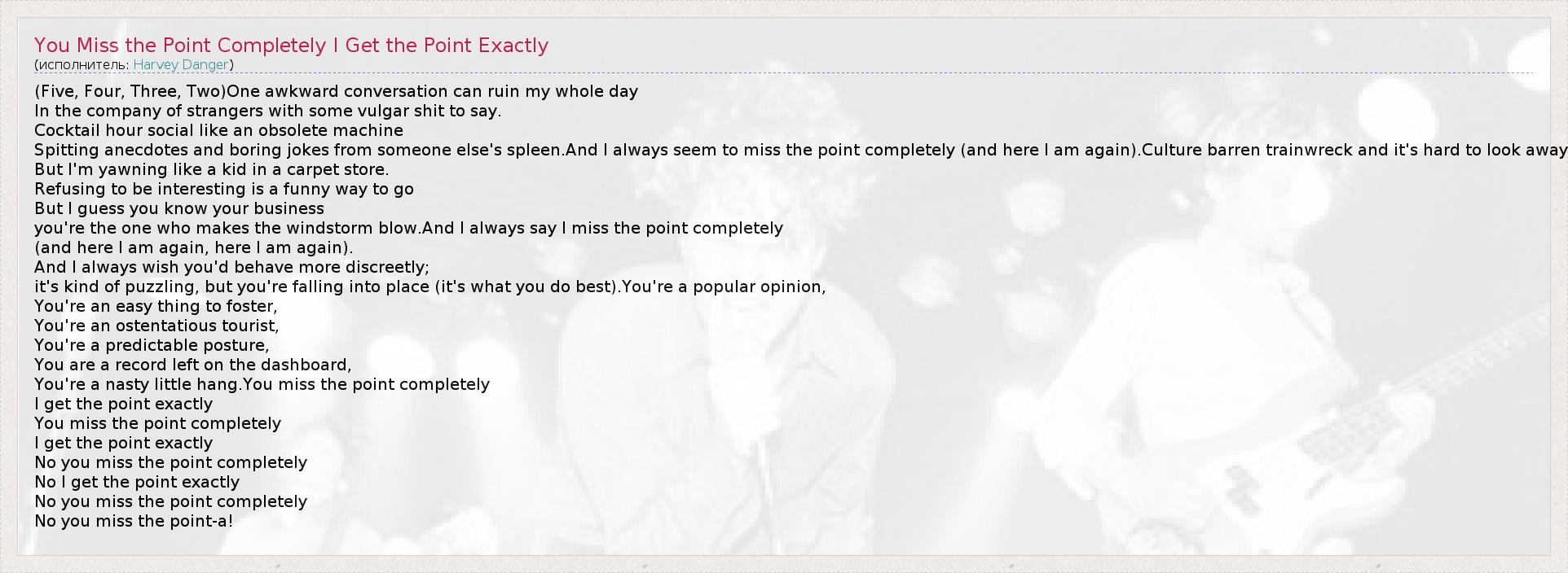 ГлавнаяИсполнителиHarvey DangerYou Miss the Point Completely I Get the Point Exactly