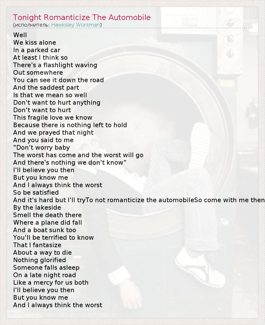А как ты думаешь, о чем песня "Tonight Romanticize The Automobile" ?