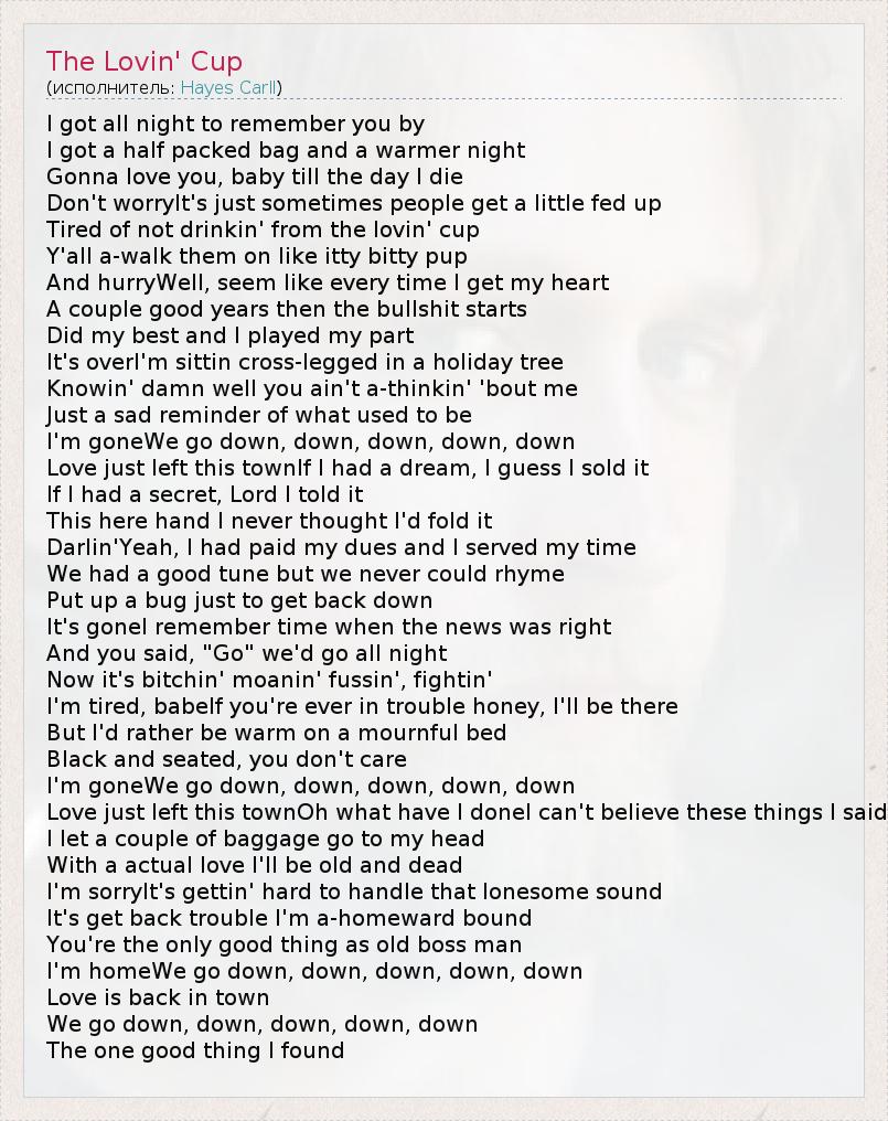А как ты думаешь, о чем песня "The Lovin' Cup" ?