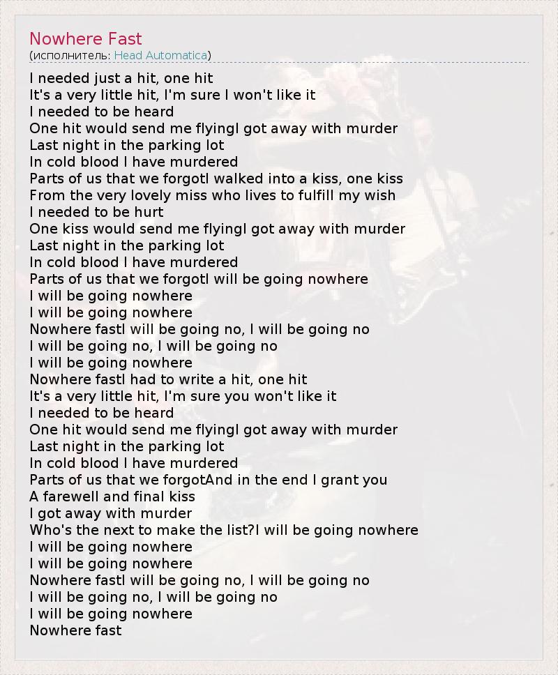 А как ты думаешь, о чем песня "Nowhere Fast" ?