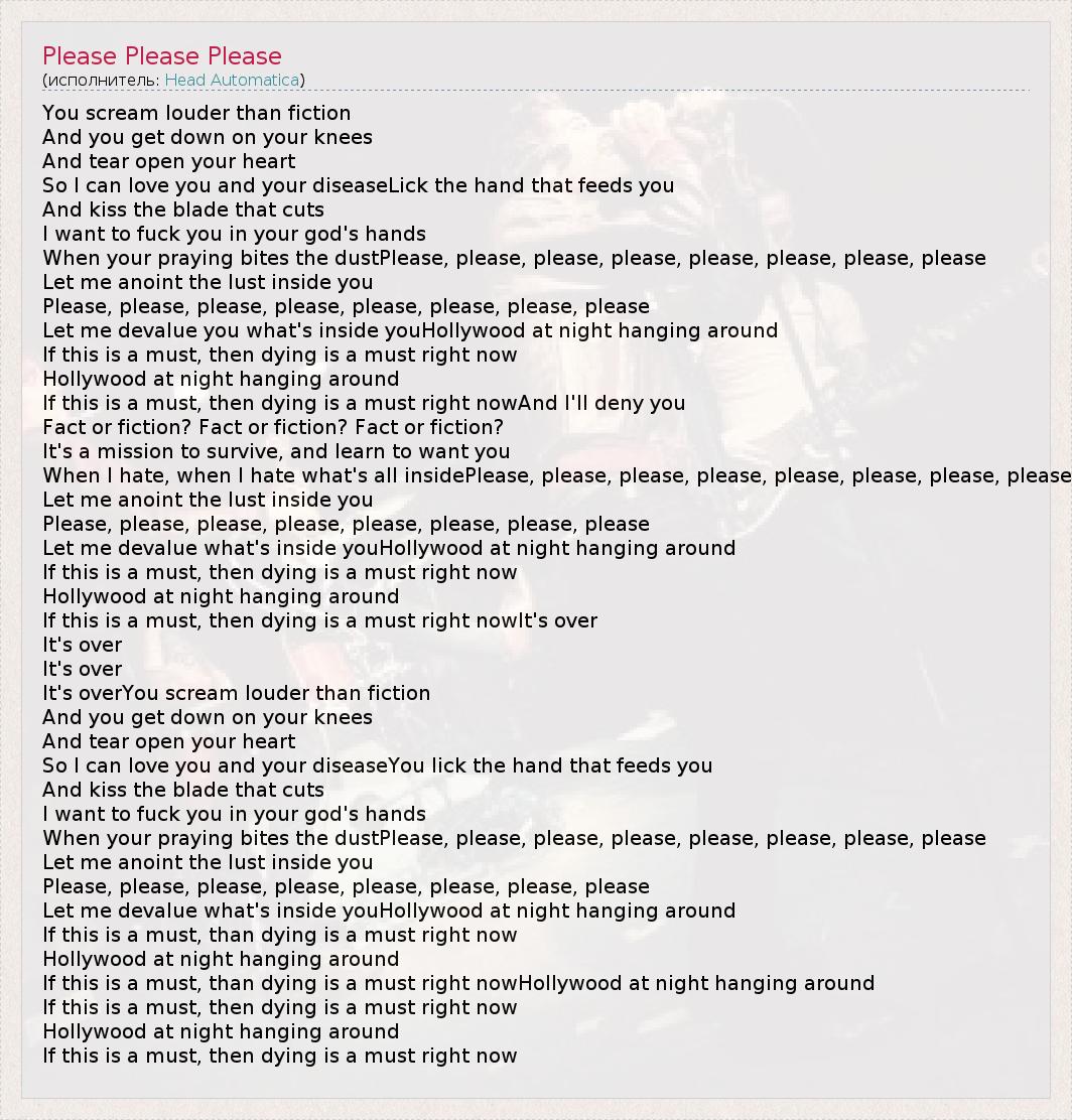 А как ты думаешь, о чем песня "Please Please Please" ?