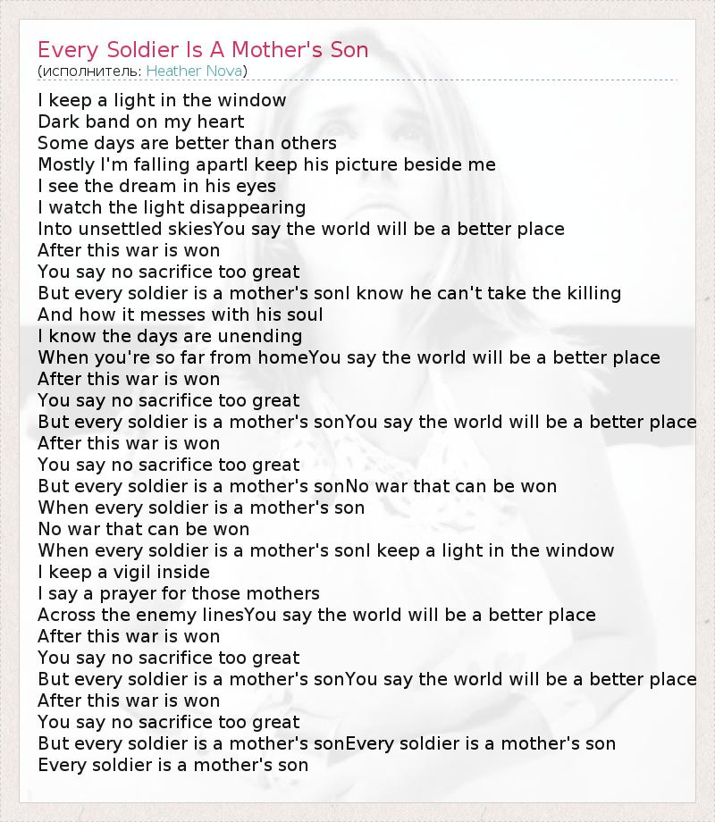 But every soldier is a mother's sonEvery soldier is a mother's son