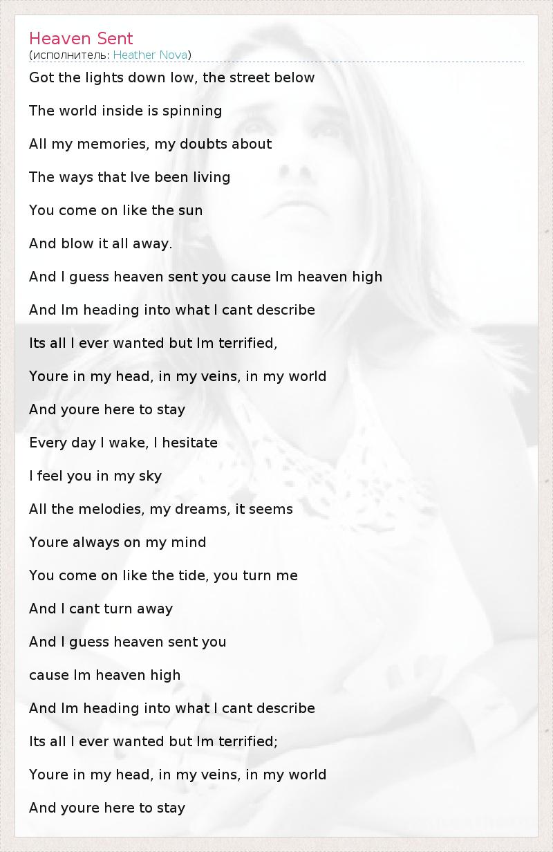 А как ты думаешь, о чем песня "Heaven Sent" ?