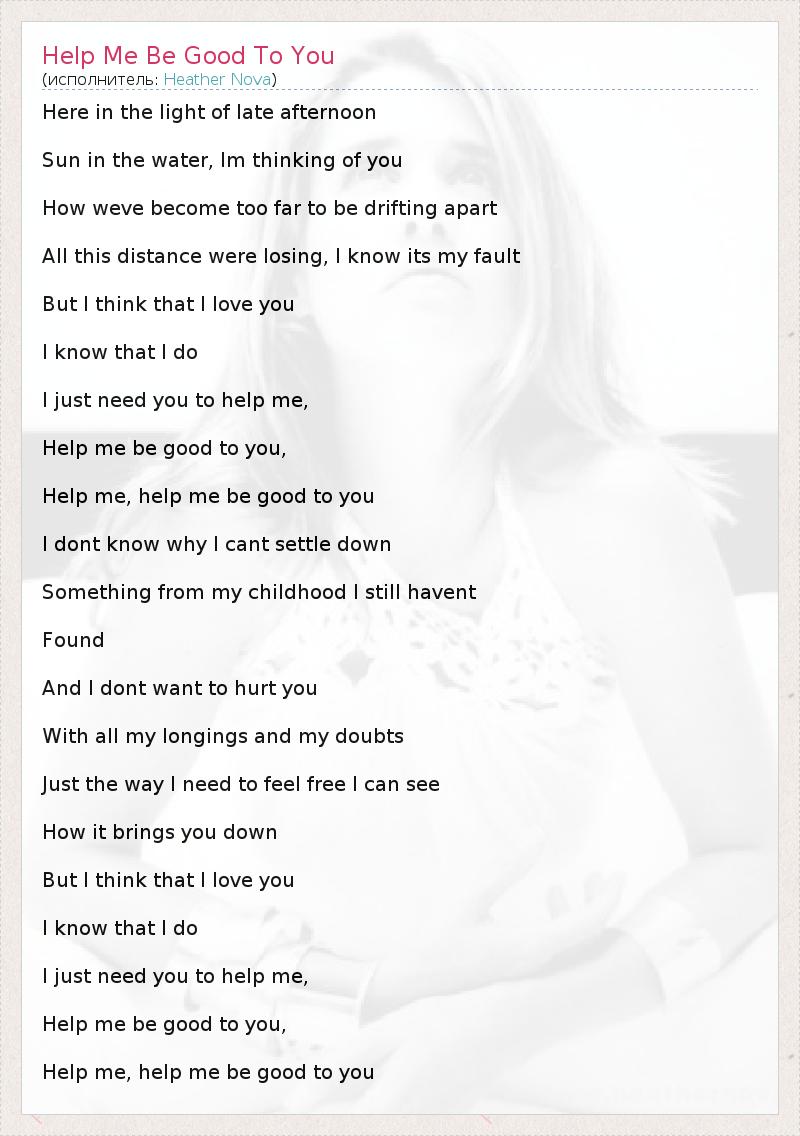 А как ты думаешь, о чем песня "Help Me Be Good To You" ?