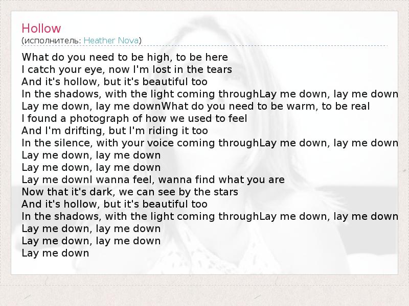 Lay me down, lay me downWhat do you need to be warm, to be real