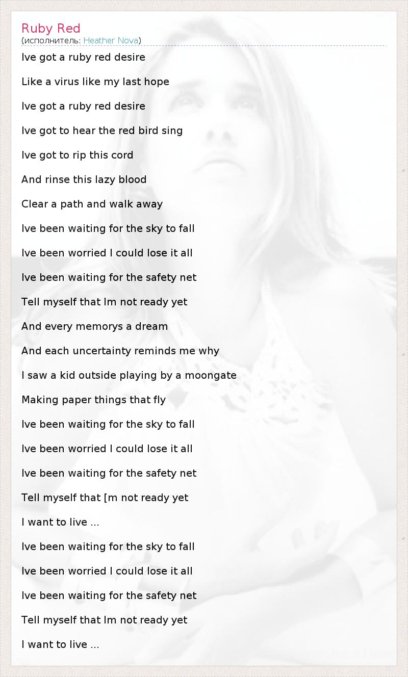 А как ты думаешь, о чем песня "Ruby Red" ?