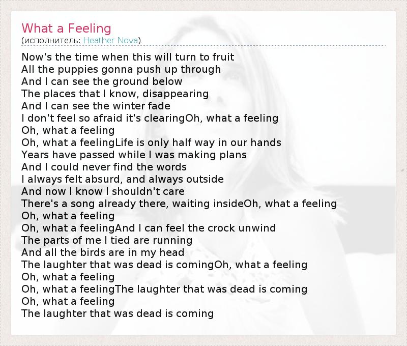 А как ты думаешь, о чем песня "What a Feeling" ?