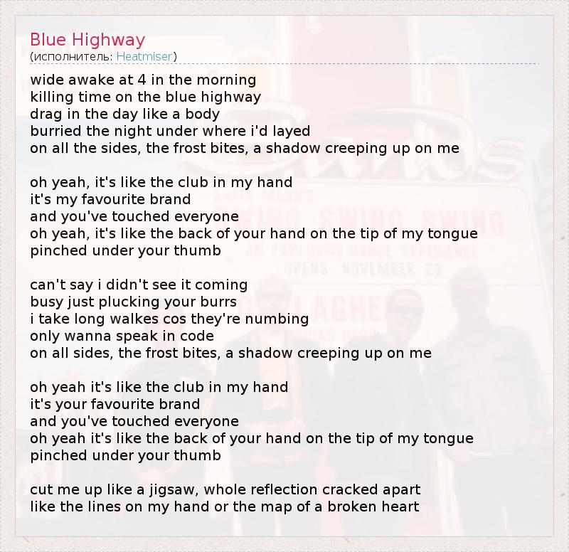 А как ты думаешь, о чем песня "Blue Highway" ?