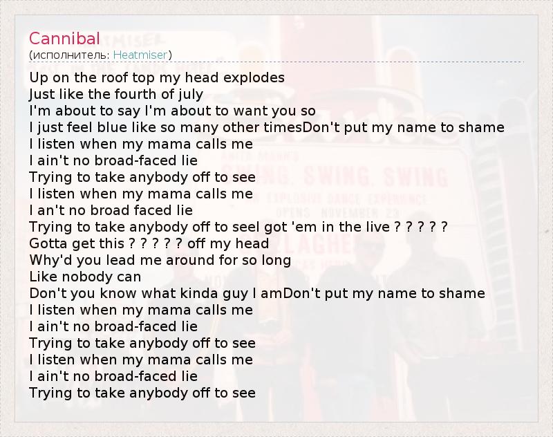 Up on the roof top my head explodes Just like the fourth of july I'm about to say I'm about to want you so I just feel blue like so many other timesDon't put my name to shame I listen when my mama calls me I ain't no broad-faced lie Trying to take anybody off to see I listen when my mama calls me I an't no broad faced lie Trying to take anybody off to seeI got 'em in the live ? ? ? ? ? Gotta get this ? ? ? ? ? off my head Why'd you lead me around for so long Like nobody can Don't you know what kinda guy I amDon't put my name to shame I listen when my mama calls me I ain't no broad-faced lie Trying to take anybody off to see I listen when my mama calls me I ain't no broad-faced lie Trying to take anybody off to see