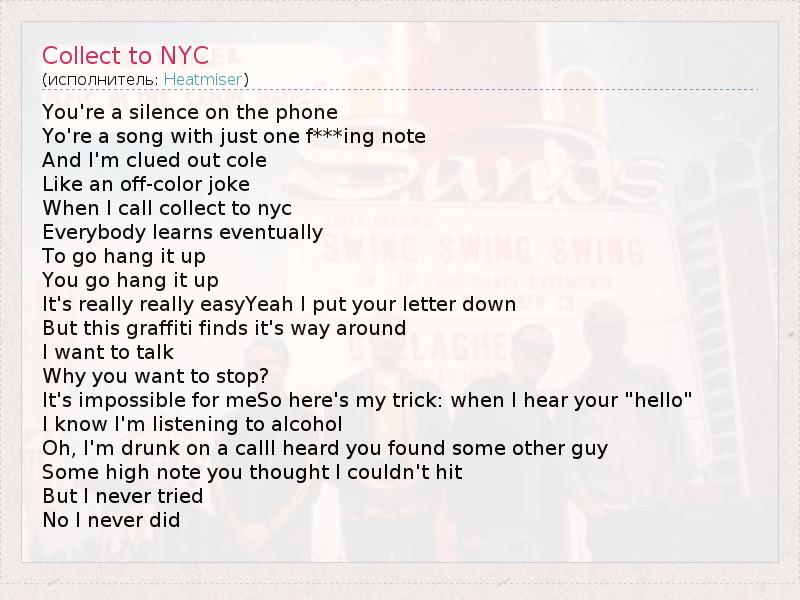 А как ты думаешь, о чем песня "Collect to NYC" ?