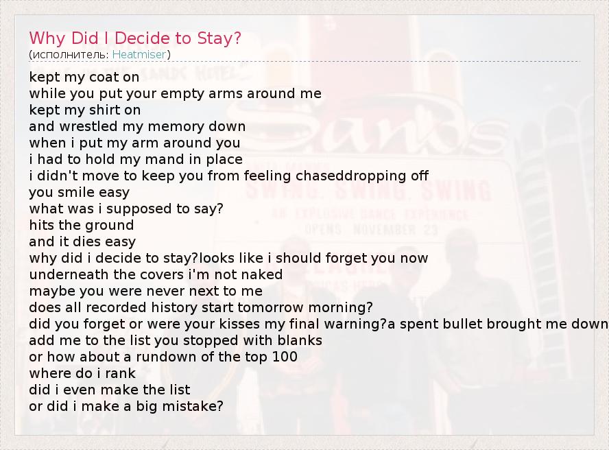 А как ты думаешь, о чем песня "Why Did I Decide to Stay?" ?