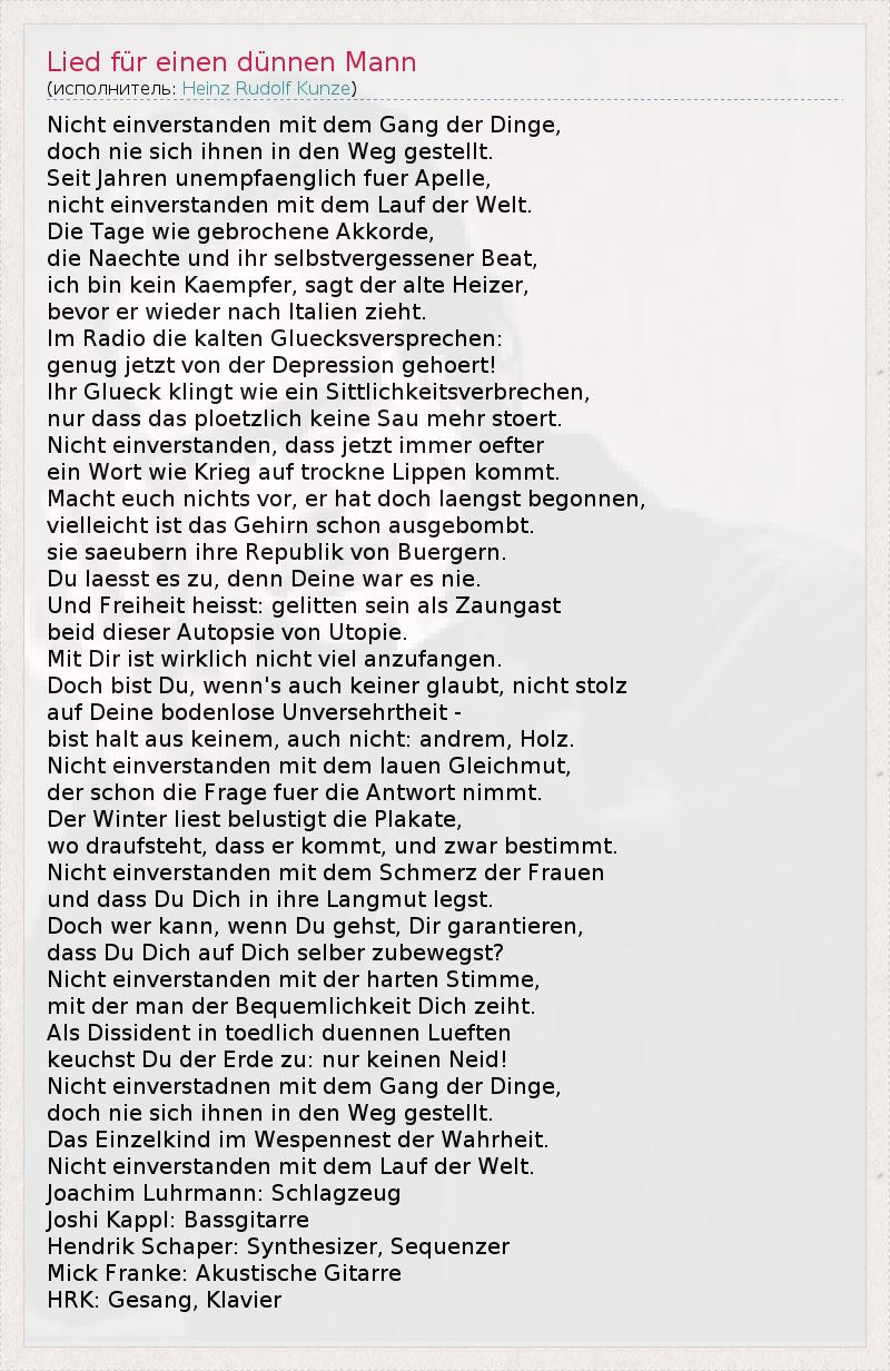 А как ты думаешь, о чем песня "Lied für einen dünnen Mann" ?