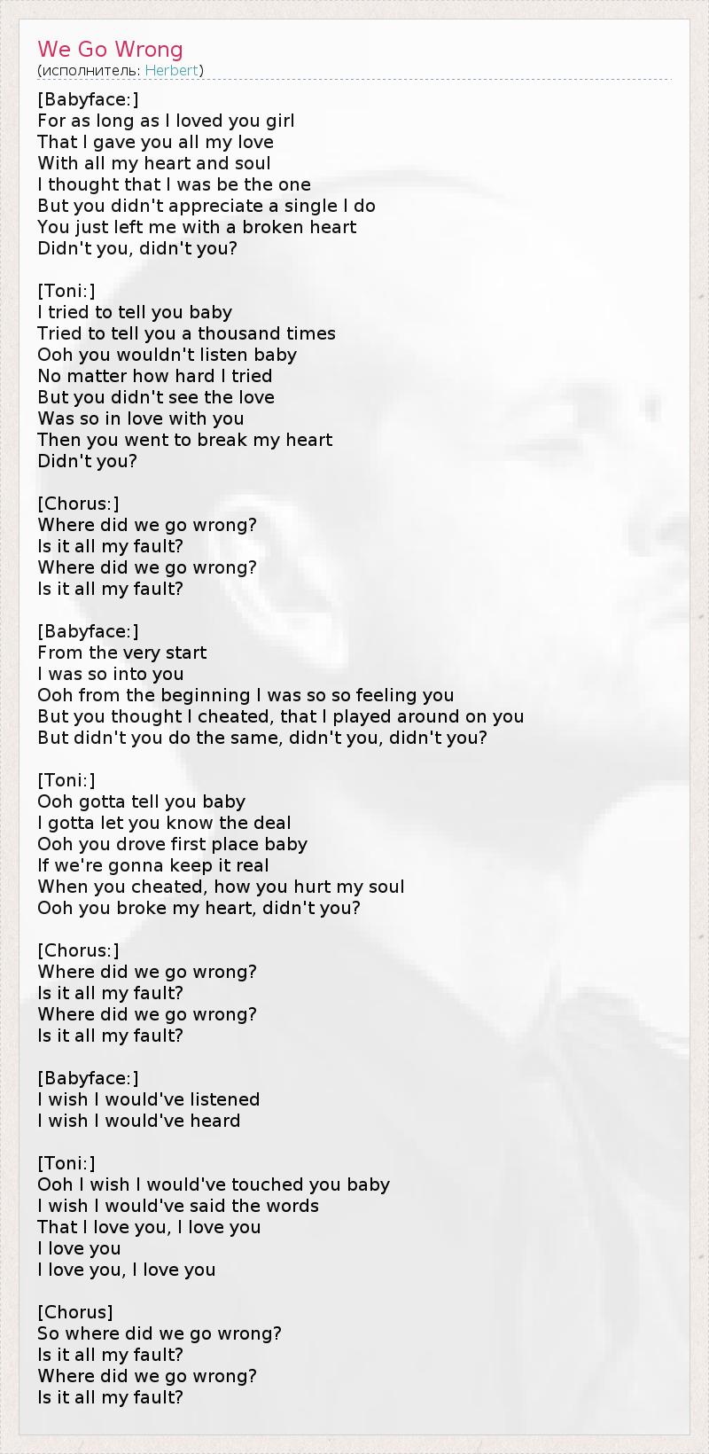 А как ты думаешь, о чем песня "We Go Wrong" ?