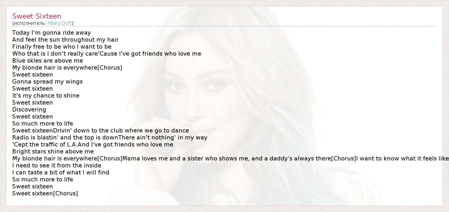 А как ты думаешь, о чем песня "Sweet Sixteen" ?