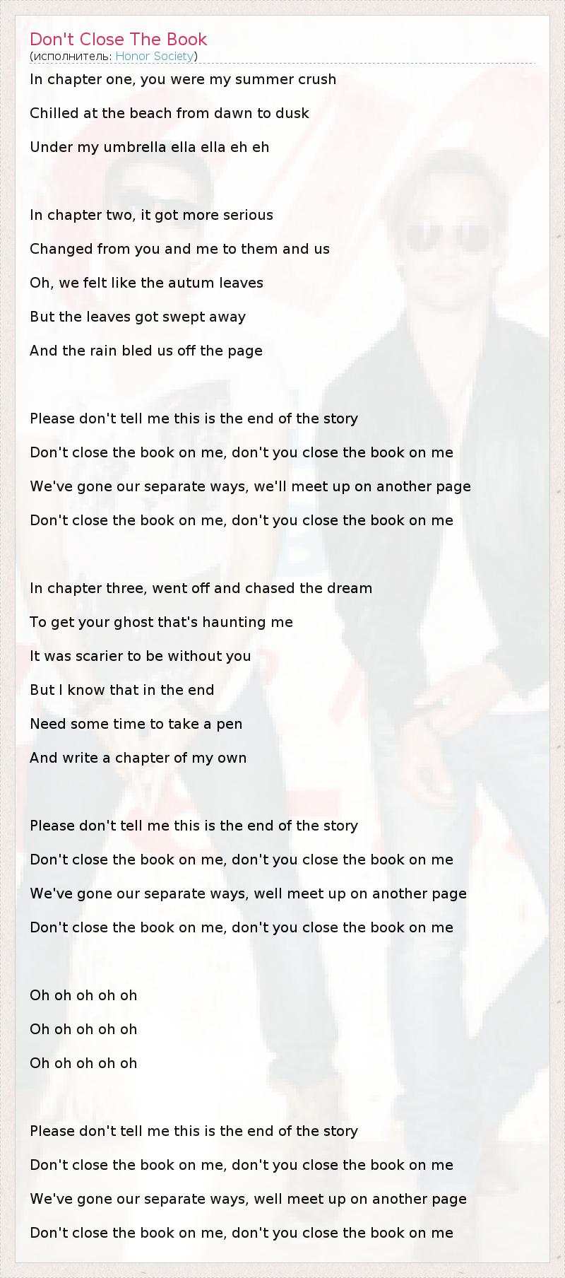 А как ты думаешь, о чем песня "Don't Close The Book" ?