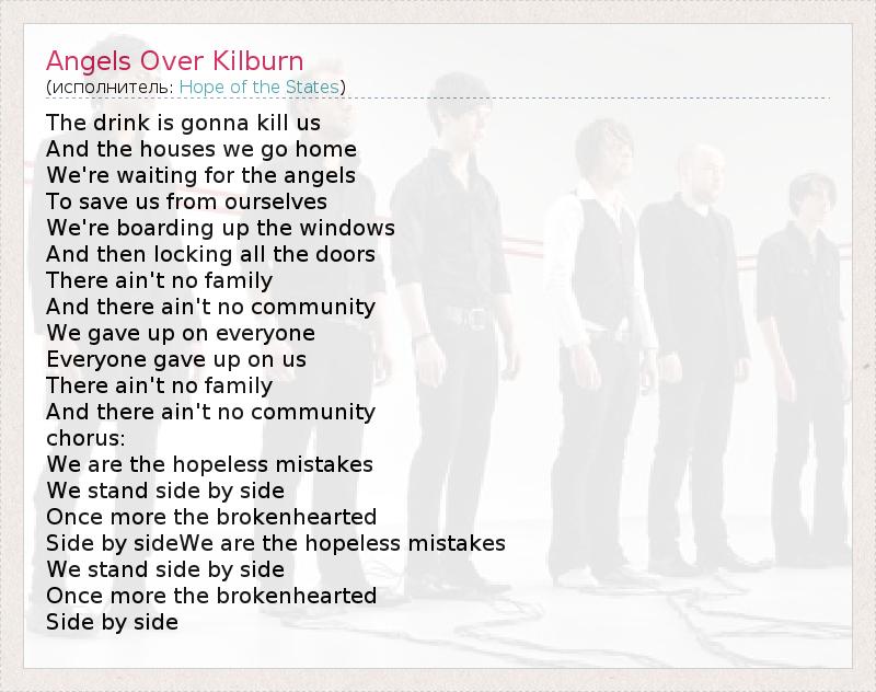 А как ты думаешь, о чем песня "Angels Over Kilburn" ?
