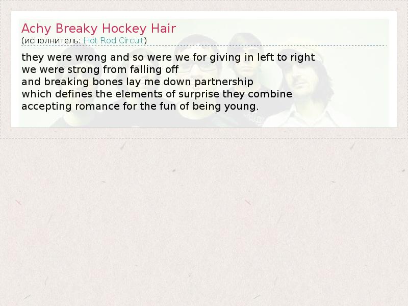 А как ты думаешь, о чем песня "Achy Breaky Hockey Hair" ?