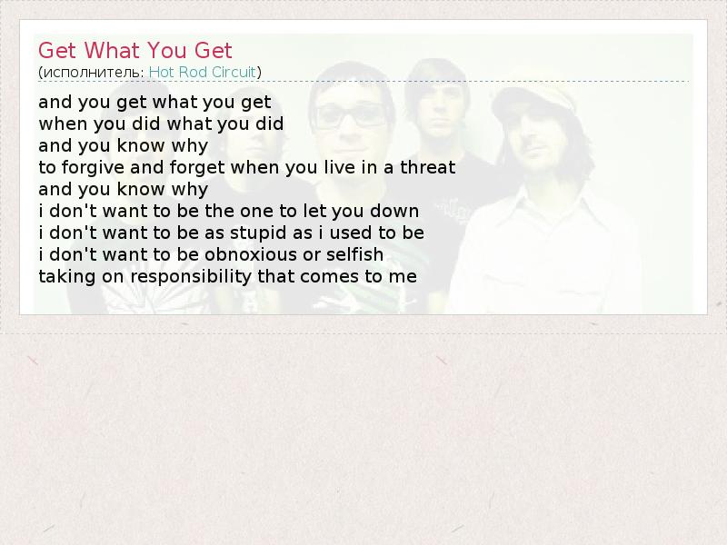 А как ты думаешь, о чем песня "Get What You Get" ?