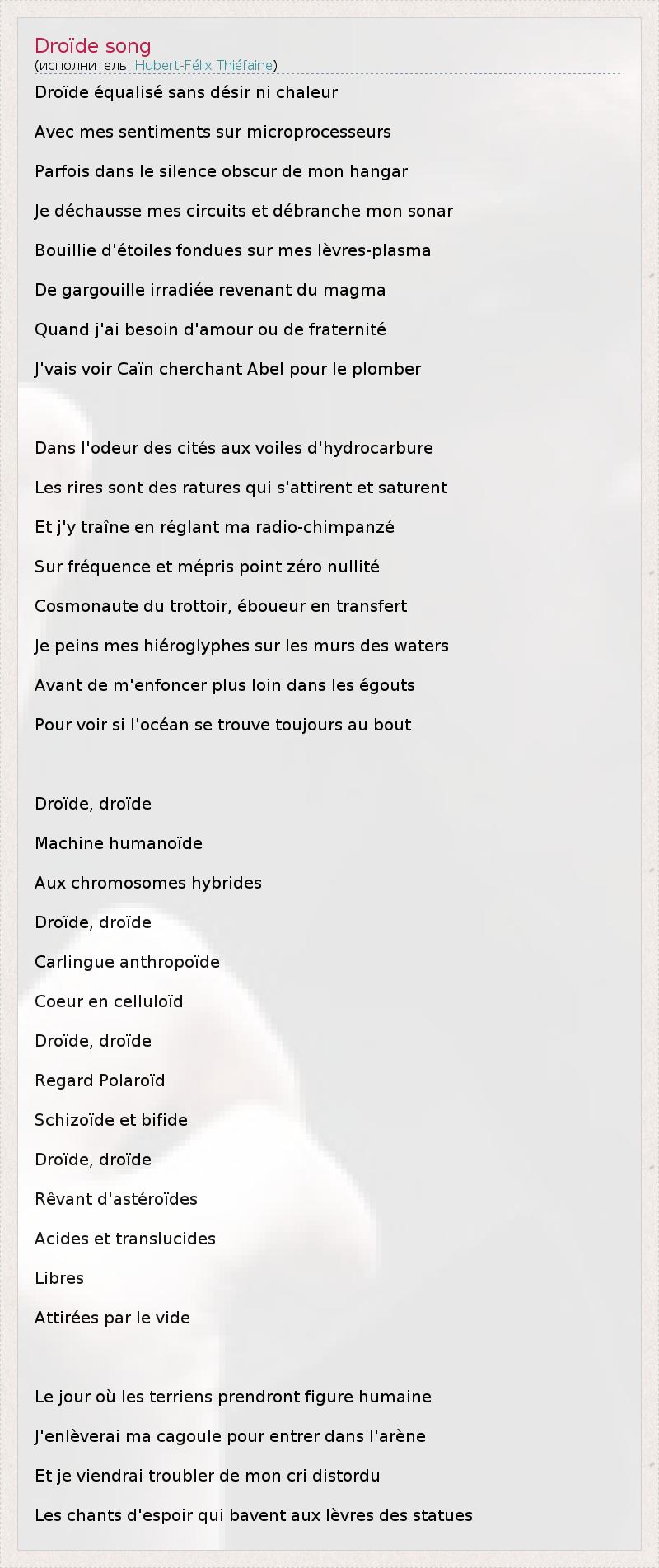 А как ты думаешь, о чем песня "Droïde song" ?