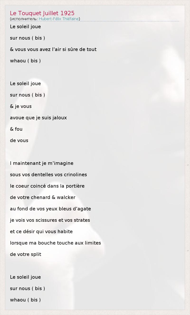 А как ты думаешь, о чем песня "Le Touquet Juillet 1925" ?
