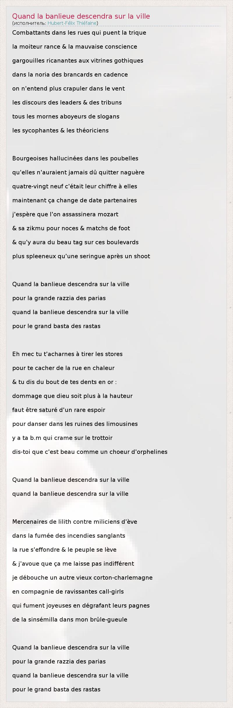 ГлавнаяИсполнителиHubert-Félix ThiéfaineQuand la banlieue descendra sur la ville