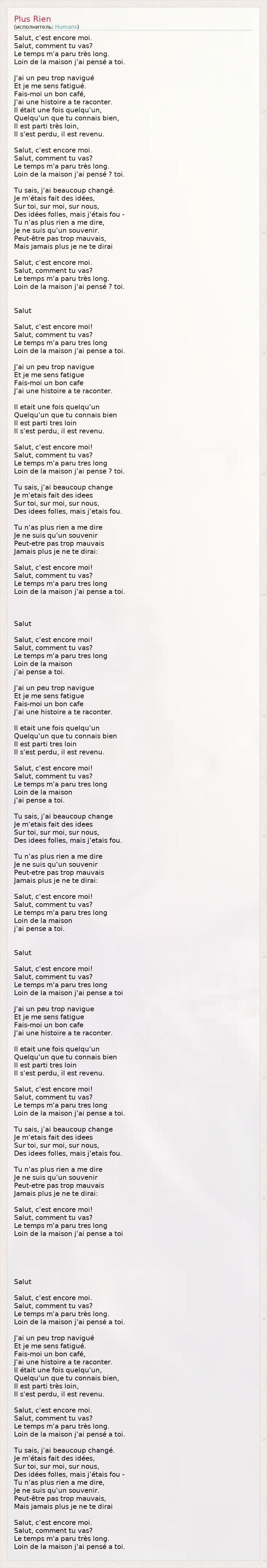А как ты думаешь, о чем песня "Plus Rien" ?