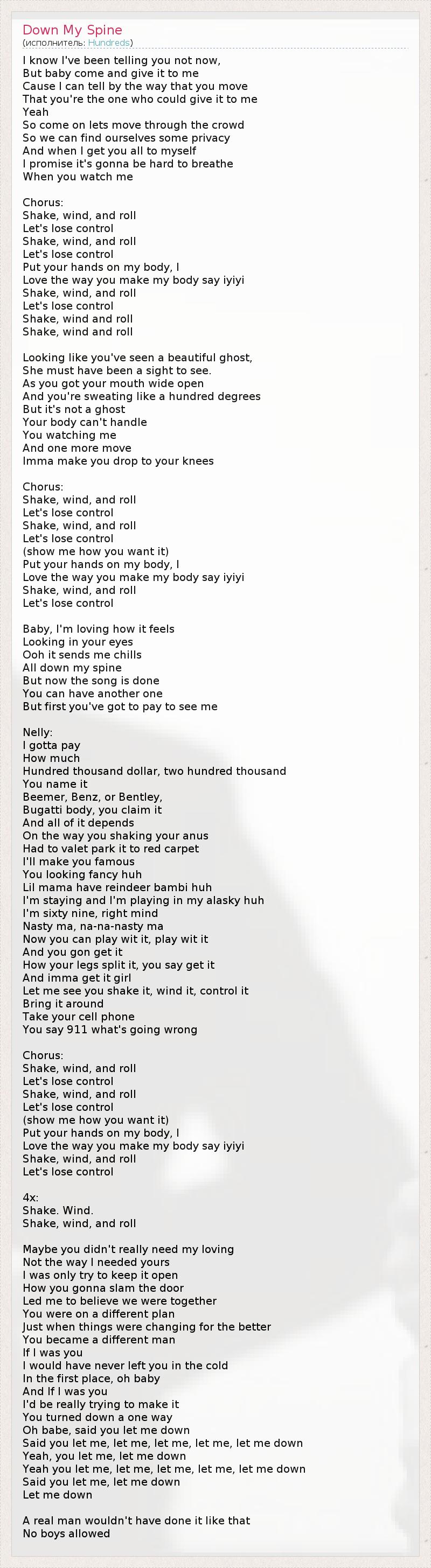 А как ты думаешь, о чем песня "Down My Spine" ?