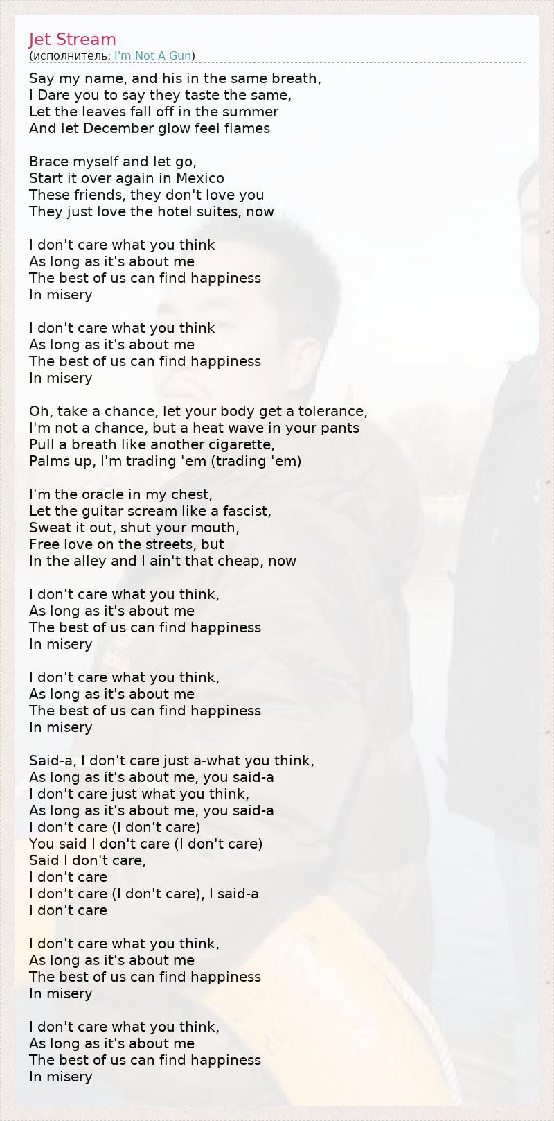 А как ты думаешь, о чем песня "Jet Stream" ?