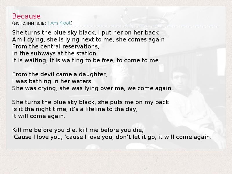 'Cause I love you, 'cause I love you, don't let it go, it will come again.