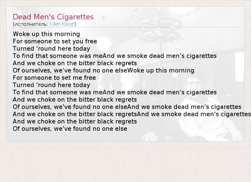 А как ты думаешь, о чем песня "Dead Men's Cigarettes" ?