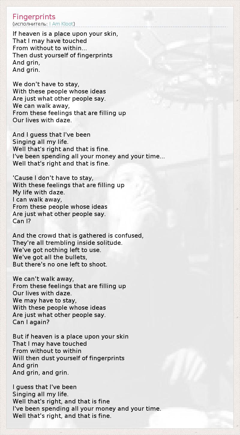 А как ты думаешь, о чем песня "Fingerprints" ?