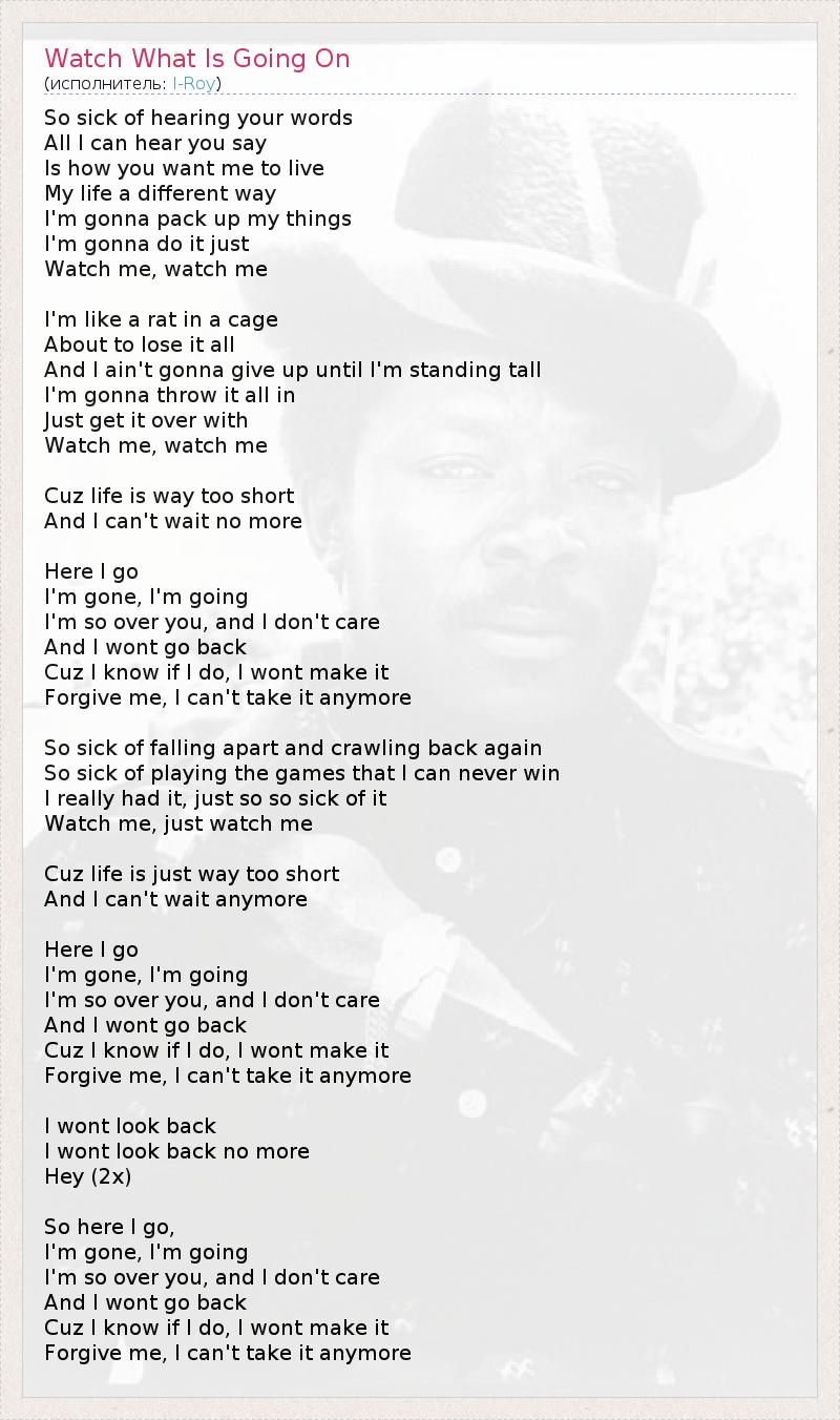 А как ты думаешь, о чем песня "Watch What Is Going On" ?