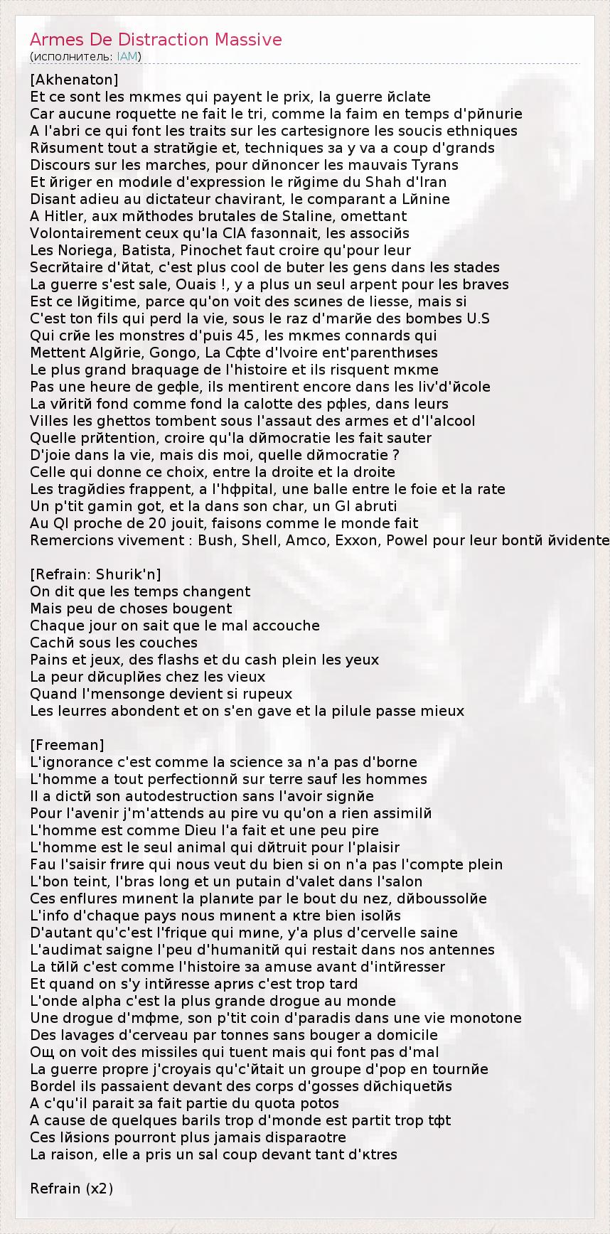 А как ты думаешь, о чем песня "Armes De Distraction Massive" ?