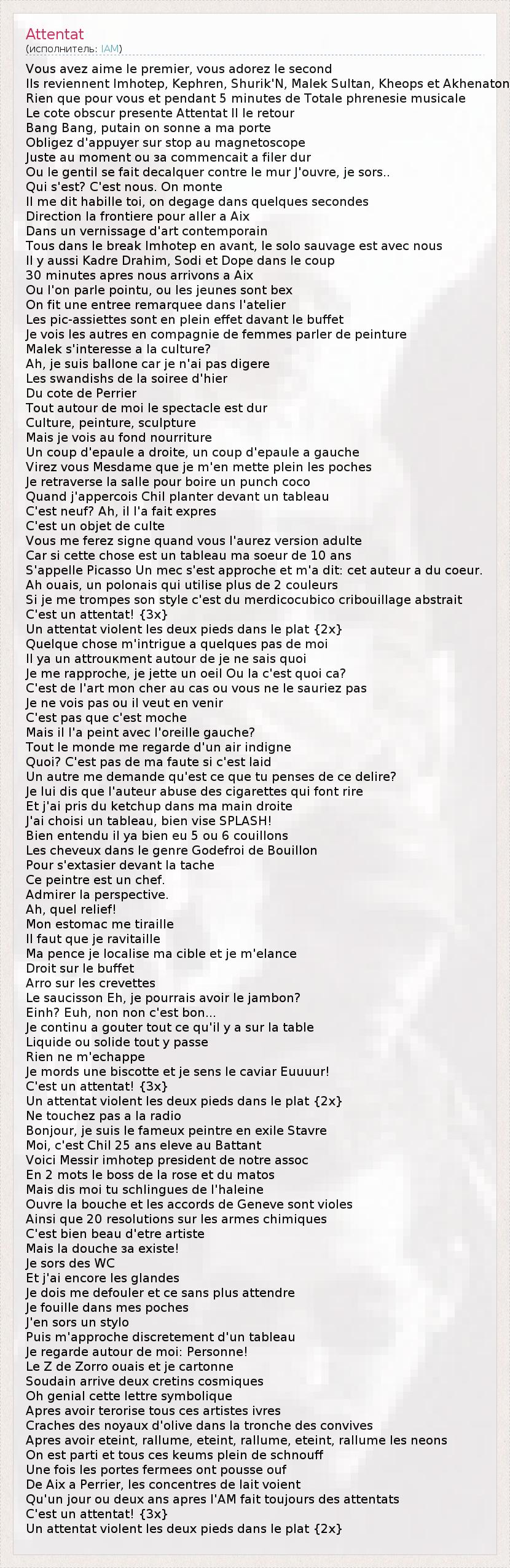 А как ты думаешь, о чем песня "Attentat" ?