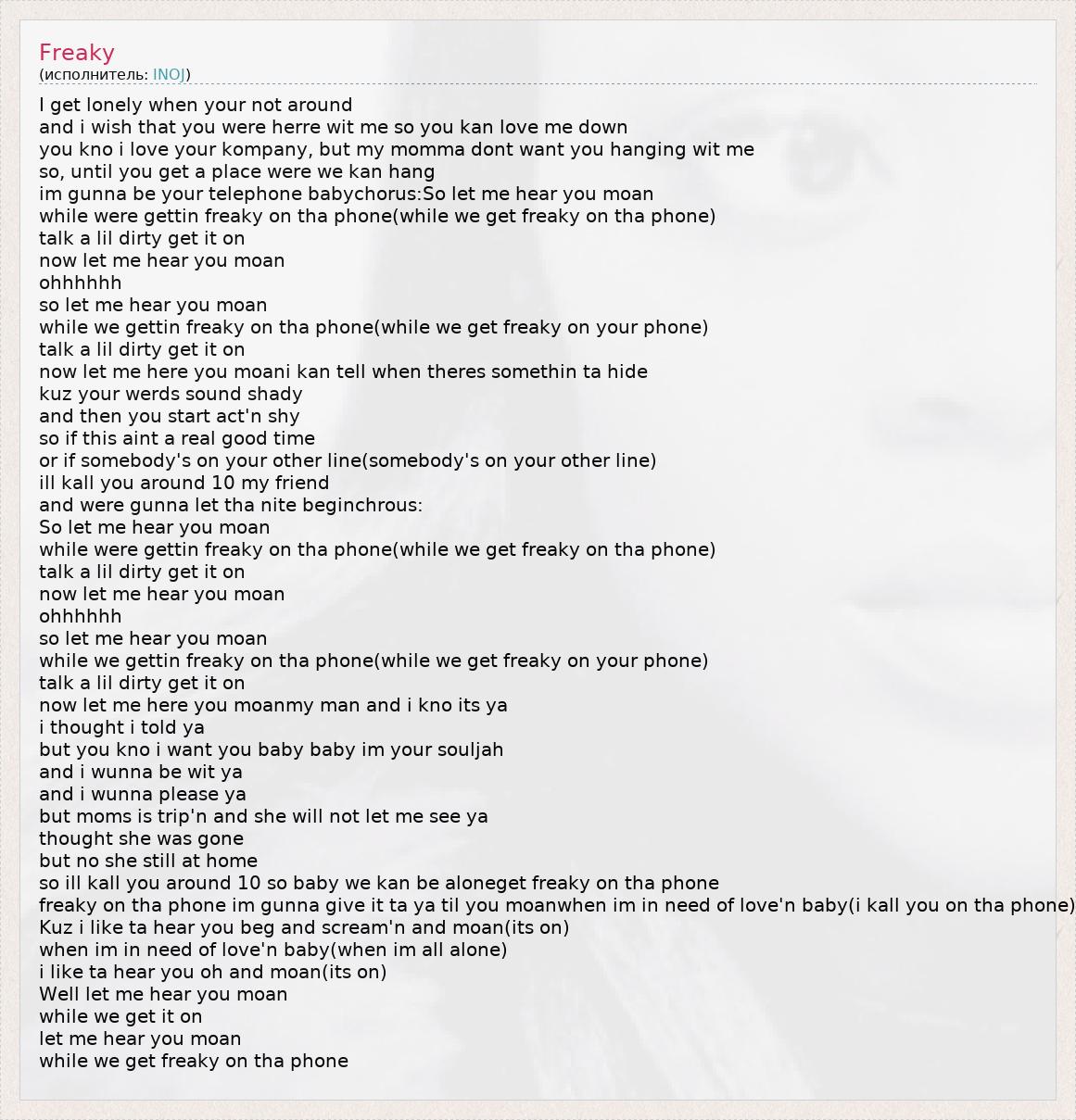 freaky on tha phone im gunna give it ta ya til you moanwhen im in need of love'n baby(i kall you on tha phone)