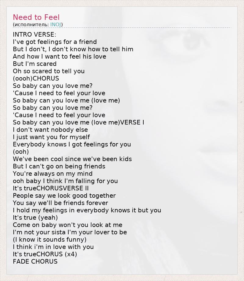 А как ты думаешь, о чем песня "Need to Feel" ?