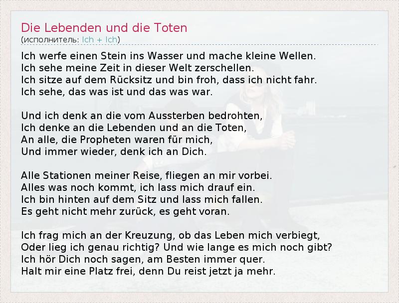 А как ты думаешь, о чем песня "Die Lebenden und die Toten" ?