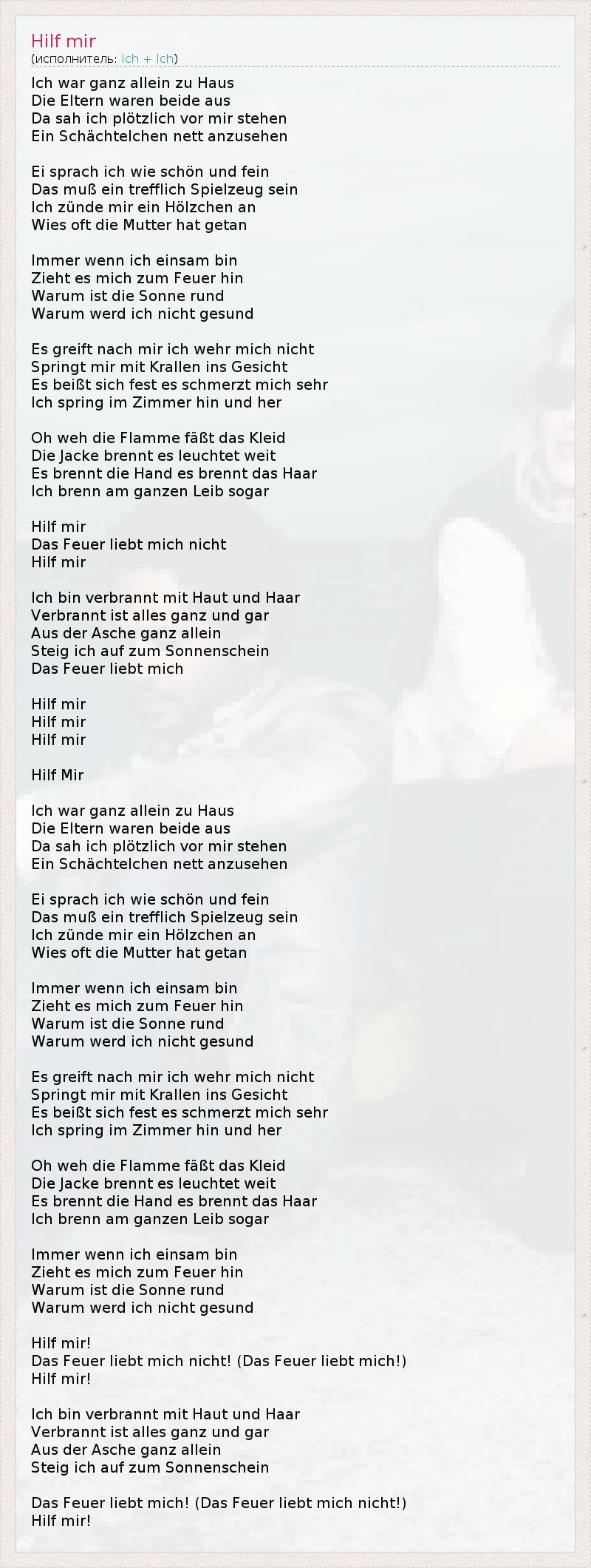 А как ты думаешь, о чем песня "Hilf mir" ?