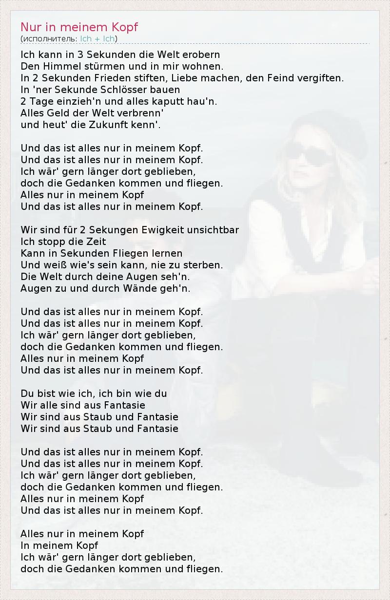 А как ты думаешь, о чем песня "Nur in meinem Kopf" ?