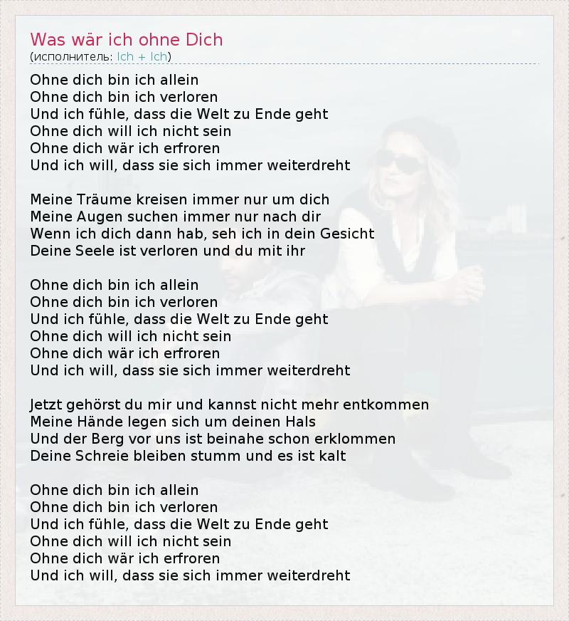 А как ты думаешь, о чем песня "Was wär ich ohne Dich" ?
