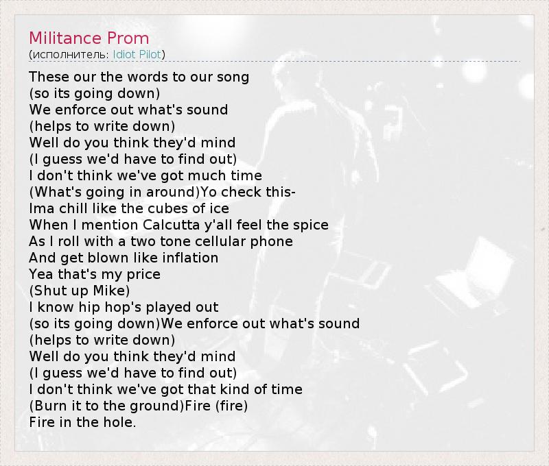 А как ты думаешь, о чем песня "Militance Prom" ?