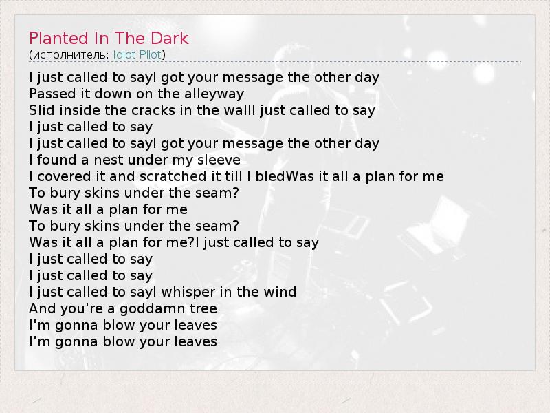А как ты думаешь, о чем песня "Planted In The Dark" ?