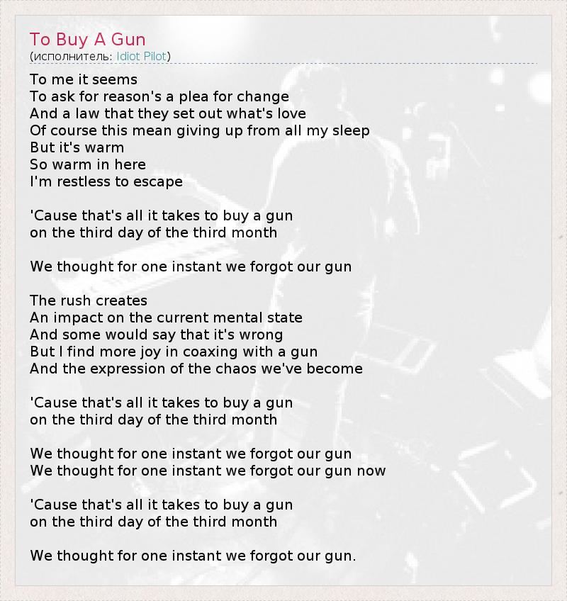 А как ты думаешь, о чем песня "To Buy A Gun" ?