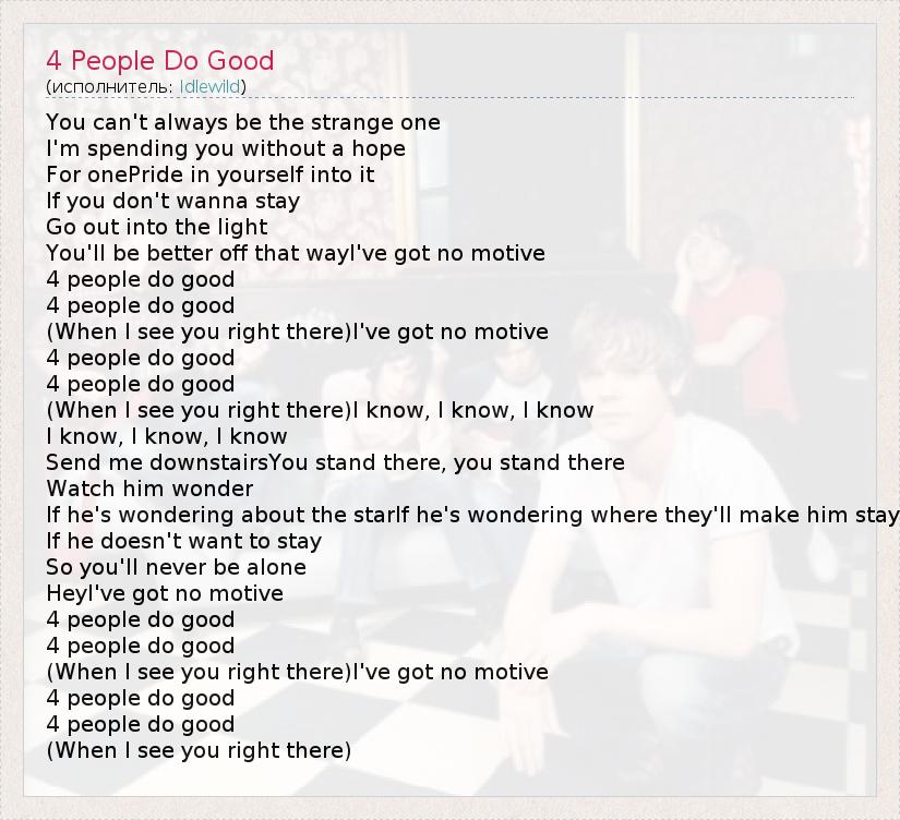 А как ты думаешь, о чем песня "4 People Do Good" ?