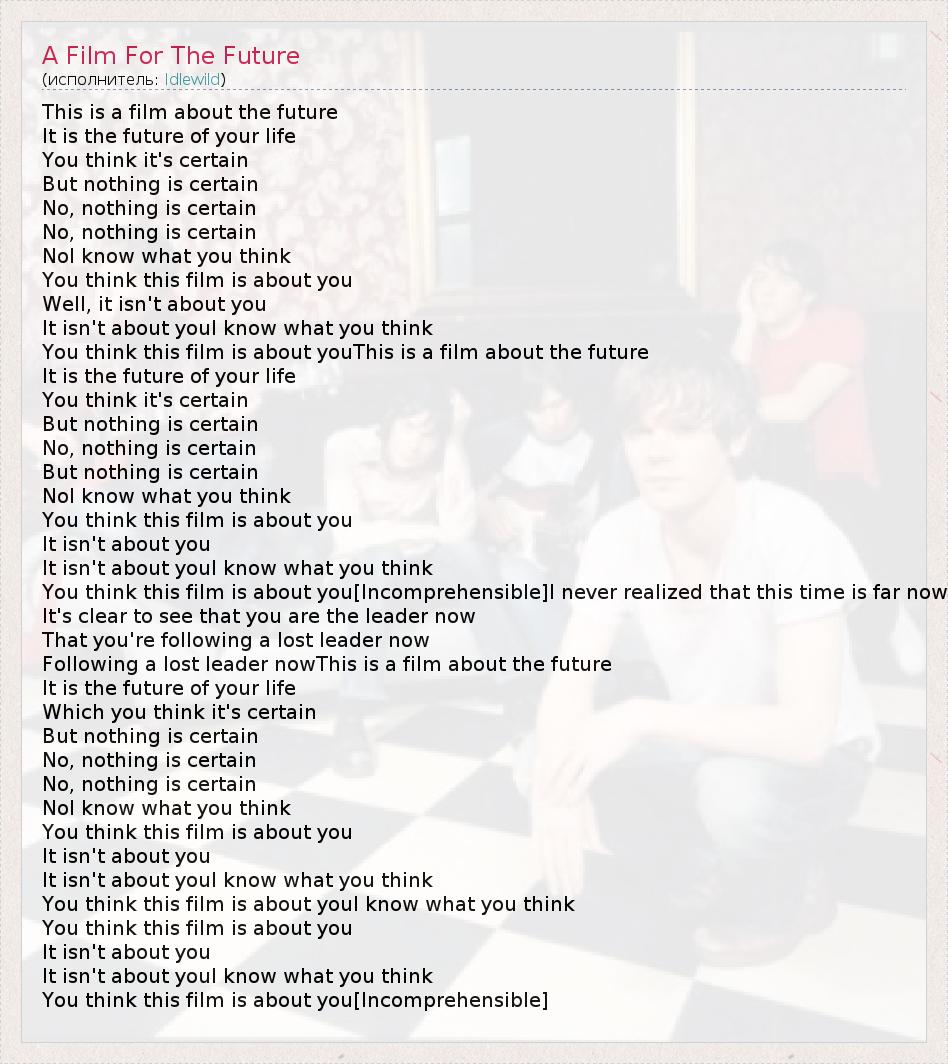 А как ты думаешь, о чем песня "A Film For The Future" ?